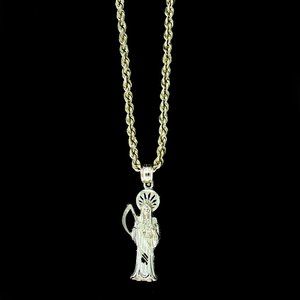 10KT Real Gold Santa Muerte Grim Reaper Pendant and 2.5MM Rope Chain Set