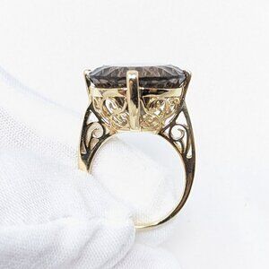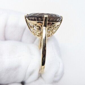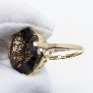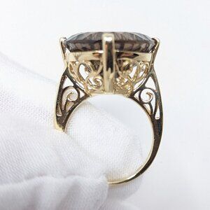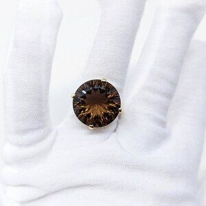 10K Solid Gold Large Vintage Round Smokey Quartz Cocktail Ring Size 7