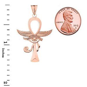 10k Rose Solid Gold Ankh With Eye of Horus Pendant Necklace