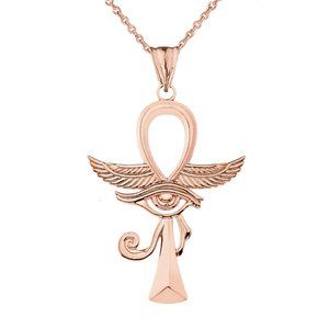 10K Solid Rose Gold Ankh Eye of Horus Necklace
