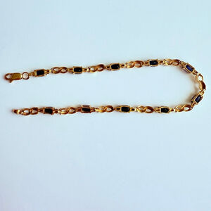 10K Solid Yellow Gold 3 CTW Natural Dark Blue Sapphire 3.5mm Tennis Bracelet