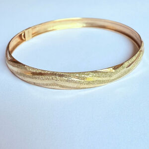 10K Solid Yellow Gold Classic Chevron Wave Diamond Etched Bangle Bracelet JJT