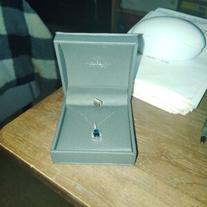 10K White Gold Blue Topaz Teardrop Necklace 🆕