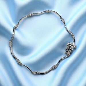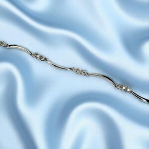 Beauty beholden for thousands of years, gold and gemstones come together to indulge the mind with masterful beauty. This is a solid 10k White Gold 1/2 Carat T.W. Round Cut Earth Mined Diamond S Link Wave Tennis Bracelet. It is approximately 7". Weighs approximately 4.2g. The bracelet is approximately 2mm wide. There are a whopping 30 diamonds set in this beautiful bracelet! An excellent gift for a loved one, engagement ring, wedding ring, anniversary gift for wife, girlfriend, birthday gift, etc. Gift Ready! Valentines Day Gift! April Birthstone Jewelry!