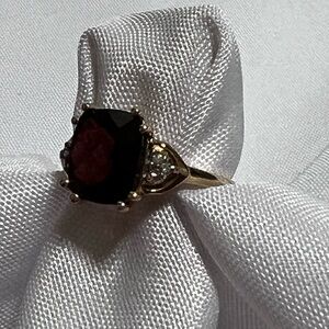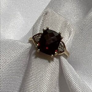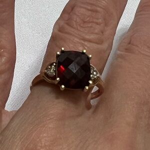10K YELLOW GOLD GARNET AND DIAMOND RING. Absolutely gorgeous. Very nice condition. Nonsmoking home. Approximate size 9.