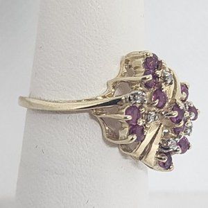 10K YELLOW GOLD RUBY & DIAMOND RING SIZE 5.5