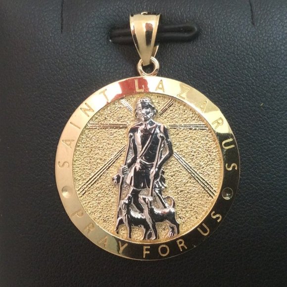 10K YELLOW REAL SOLID GOLD MEDALLION PENDANT SAINT LAZARUS PRAY FOR US 4.30 GR