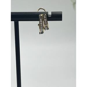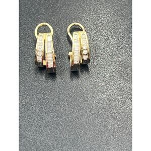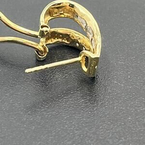 10K Yellow Gold 30 Diamonds Round Baguette Channel Huggie Hoop Omega Earrings