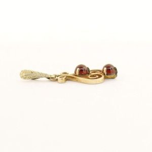 10K Yellow Gold ANTIQUE Garnet Bead Filigree Lavalier Pendant 0.8g