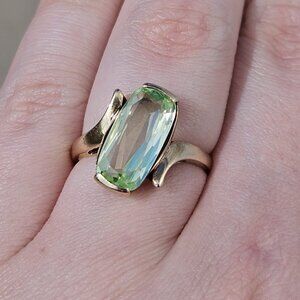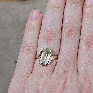 10K Yellow Gold Elongated Cushion Cut Uranium Glass Cocktail Ring Size 6.25