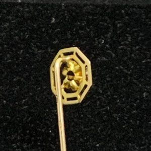 Vintage 10K Yellow Gold Floral Stick Pin With Pink Rhinestone. It is Marked 10K Gold and has a makers mark that i can not read even with a magnifier. I do not believe the clasp is original to the pin.