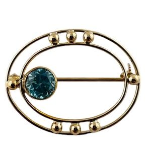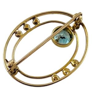 10K Yellow Gold Open Oval Blue Zircon Brooch #15684