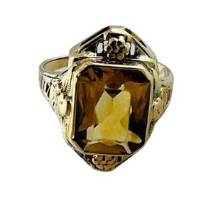10K Yellow Gold Orange Citrine Filigree Ring #15992