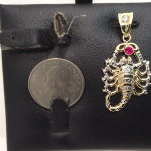 10K Yellow Real Gold RED CZ Scorpion Pendant 2.5gr
