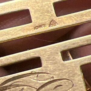 10k yellow gold money clip. This item is a beautifully crafted and maintained antique from the elegant Art Deco era. This piece has the clean, geometric lines of a cathedral window with monogram cursive initials