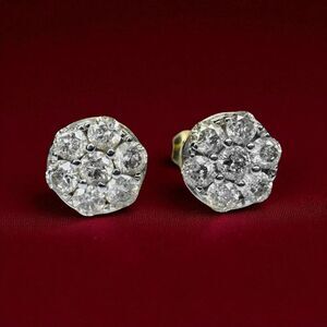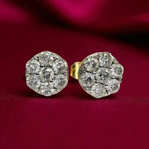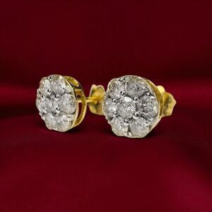 10K Yellow Gold Genuine Diamond Unisex 8mm Floral Set Flower Stud Earrings 1 CT