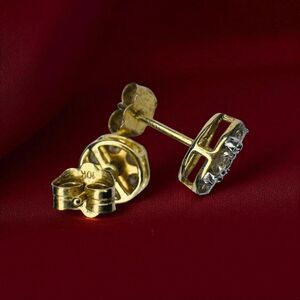 This is a gorgeous solid 10k Yellow Gold pair of stud earrings with 14 mesmerizing natural round cut 3mm diamonds!