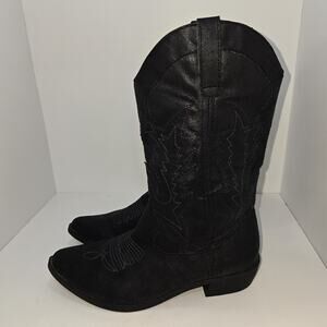 10M Black Western Cowboy Boots Fabric Faux Suede Embroidered