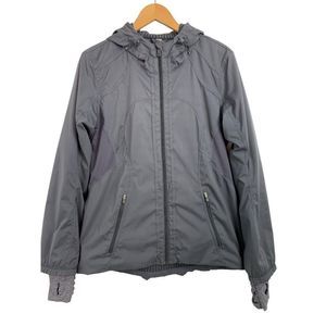 10 M Lululemon Full Zip Hiking walking jacket Hood Breathable Gray 6442 EUC