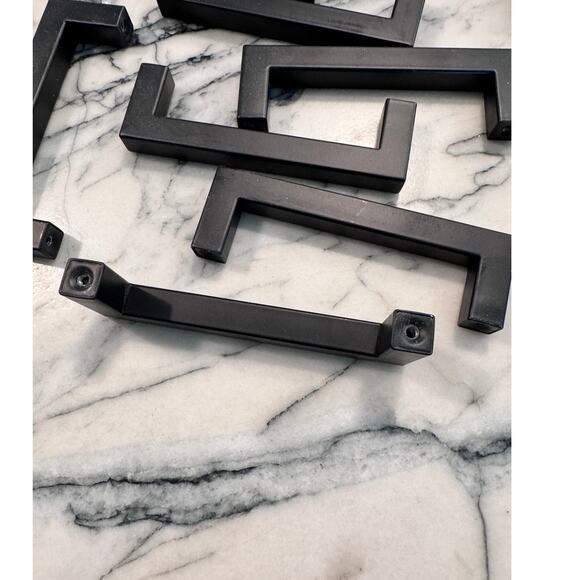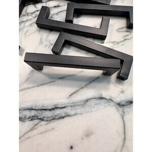 New (Open Box) modern square-bar cabinet/drawer pulls in a versatile matte black. Standard 4" CTC spacing for easy kitchen, bath, or dresser updates. New in open box; contents verified and photographed. Clean, minimalist look that suits contemporary, transitional, and modern farmhouse styles. All mounting screws included for common thicknesses 1/2"–1-1/2".