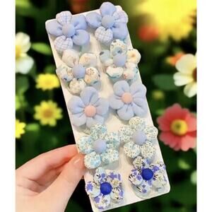 10Pcs Baby Hair Accessories Cute Blue Floral Ponytail Holder Soft Scrunchie