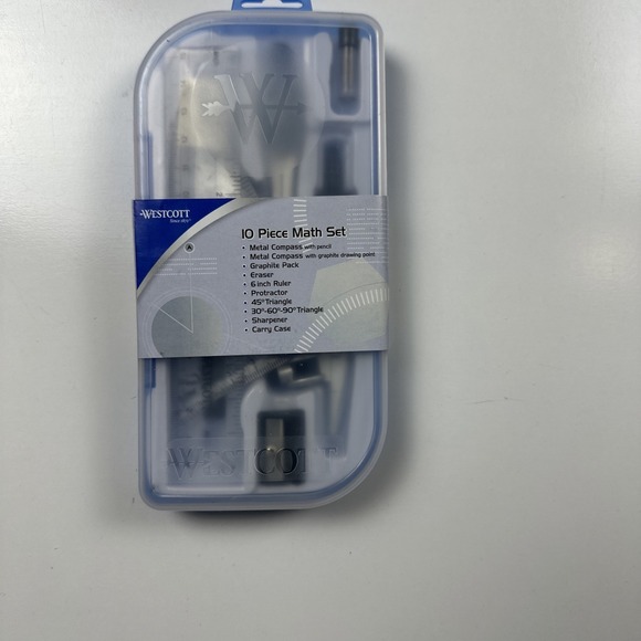 The 10-Piece Math Set is a comprehensive collection of tools designed for students, including 2 compasses, a protractor, and a ruler. Made of durable metal in a stylish blue color, this set is lightweight at 0.29 pounds and compact with dimensions of 7.13x3.66x0.94 inches. The set comes in a single package with a total unit count of 10, making it ideal for students who need precision tools for their math and geometry projects. The set is a practical and essential addition to any student's workstation.