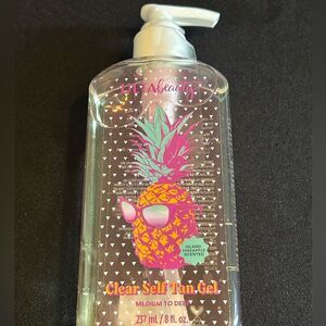 Achieve a natural-looking tan with ULTA Beauty's Clear Self Tan Gel. Infused with a delightful island pineapple scent, this gel features a vibrant pink and yellow design. Perfect for medium to deep skin tones.