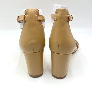 10W 10 WIDE WIDTH Nine West Pruce Nude Beige Tan Leather Heel Sandals Shoes