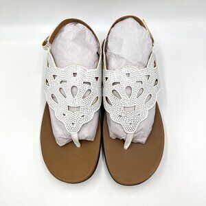 10W 10 WIDE WIDTH Rockport Ridge Sling White Jeweled Lasercut Sandals Shoes