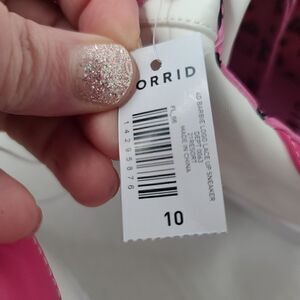 10W Barie Logo Pink White Lace Up Sneaker Lined Barbie Extra Wide Width Torrid NWT faux leather. 14×7×5 1lb 14oz
