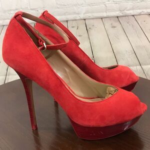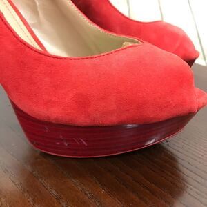 10 ZARA Red Suede Peep platform peep toe high heel GUC