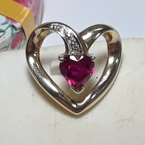 1.0ct Lab Created Heart Cut Ruby Diamond Open Heart 10K Y/Gold Slide Pend #20273
