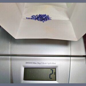 This parcel of ~68 loose marquise-cut tanzanite stones (5x2.5mm) totals approximately 10 carats. These beautiful light lavender-blue gems were part of my mother’s “investment collection,” purchased from ACN (America’s Collectibles Network) in the early 2000s before their rebranding to JTV (Jewelry Television).