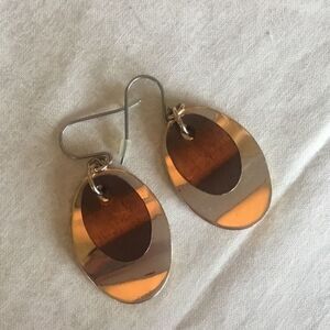 Bright and shiny oval goldtone wavy disks are overplayed with a smaller oval copper tone disk to form these basic earrings. They Measure 1 3/4” in drop and are 13/16” wide (that’s just a smidge over 3/4”). Nice weight to these - not too light nor too heavy! Very gently used as shown in photos.