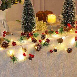 10ft Christmas Garland - LED Lights, Pine Cones, Berries & Bells