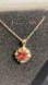 💋10k Gold Plated Cushion Cut Prong Set Simulated Red Ruby(Cz)Pendant Necklace