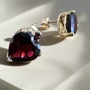 10k Solid Gold 2.30 Carat Garnet Heart Shaped Earrings