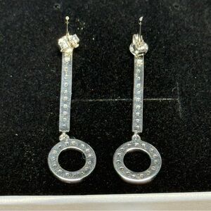 10k Solid White Gold & Diamond Elegant Drop Earrings.