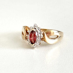 Lovely 10k Solid Yellow Gold Natural Garnet Marquise Ladies Band Ring Size 4.75
