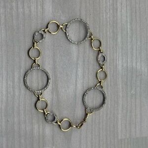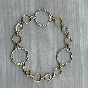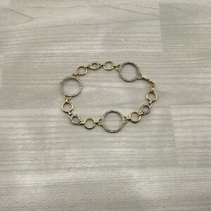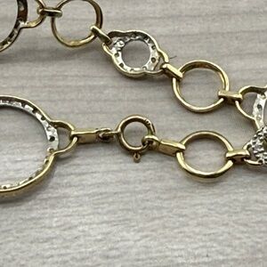 This exquisite bracelet showcases a captivating blend of gold and silver tones, featuring alternating crystal-embellished and plain rings. Its versatile design makes it an ideal accessory for both casual and formal occasions.