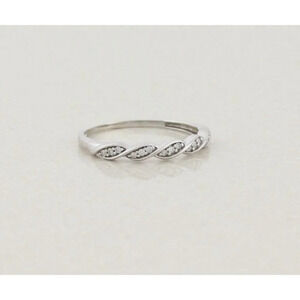 10k White Gold .12 Carat Diamond Weave Design Ring Stackable Band Size 9 1/4