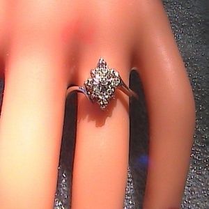 Vintage 10k White Gold Genuine Diamond chip cluster ring