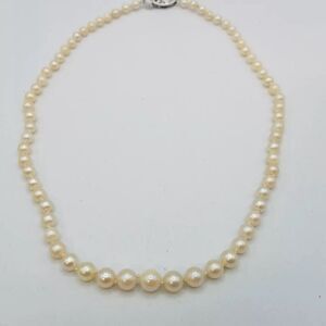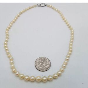 10k White Gold Graduated Knotted FW Pearl Neklace 6.8g