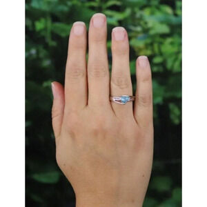 10k White Gold Natural Blue Topaz & Diamond Ring Size 7 1/4