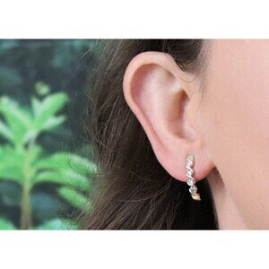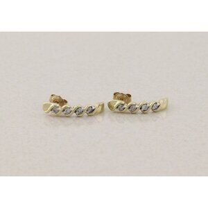 10k Yellow Gold Diamond Half Hoop Earrings 3/4" x 1/4"
