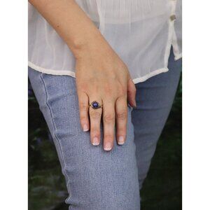 10k Yellow Gold Lab Created Blue Star Sapphire Ring Size 7