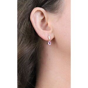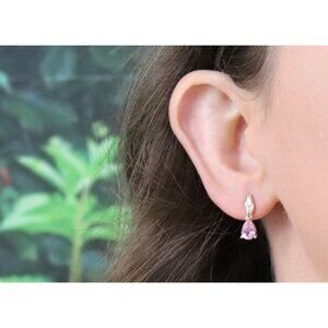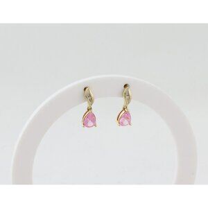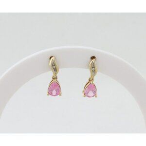 10k Yellow Gold Lab Created Pink Sapphire & White Topaz Earrings Dangle 5/8"