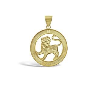 10k Yellow Gold Leo Pendant Zodiac Star Sign Charm 1.1 inch