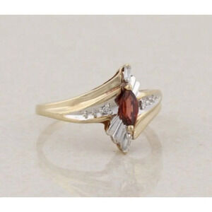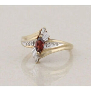 10k Yellow Gold Natural Garnet & Diamond Ring Size 7 1/4