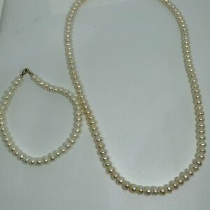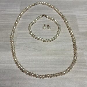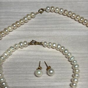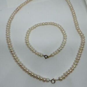 10k Yellow Gold & Natural Pearls Set Necklace& Bracelet and Earrings vintage,Y2K